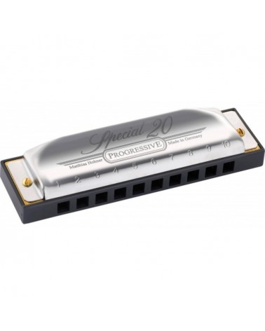 La Hohner Special 20 es una armónica diatónica de 10 celdas, reconocida por su diseño innovador y su sonido distintivo. Fue la primera armónica en el mundo en incorporar las placas de lengüetas dentro del peine, creando una boquilla de plástico saliente que mejora la comodidad al tocar.
