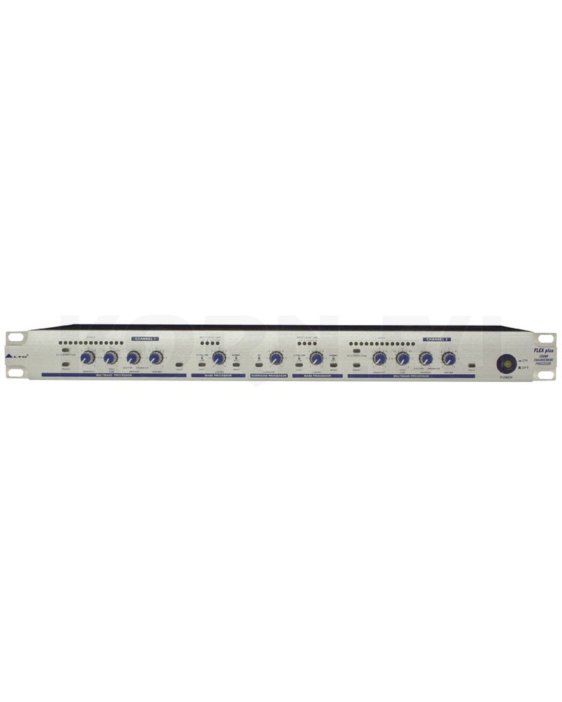 El Alto Flex-Plus es un sistema de amplificación de sonido multibanda diseñado para optimizar el comportamiento de las frecuencias agudas mediante un potenciador o excitador. También cuenta con un sistema automático de reducción de ruido y un procesador de graves para mejorar la calidad de las frecuencias graves.