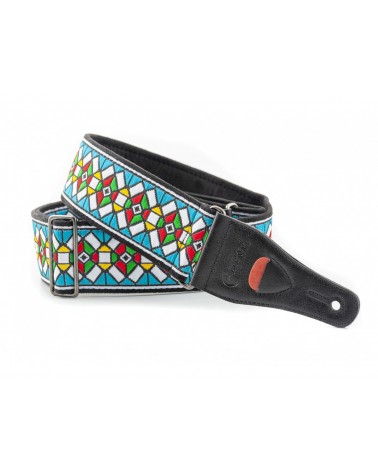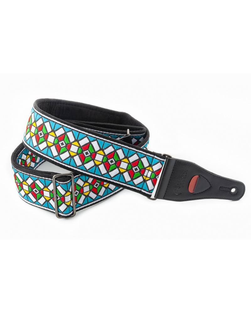 Replica los diseños originales de la correa utilizados por muchos artistas icónicos durante los 60 y 70 tambien llamada Stained Glass Strap, usadas por muchos artistas icónicos de la época, incluyendo Jimi Hendrix, Jimmy Page, Bob Dylan, John Lennon, Eric Clapton y Elvis Presley y muchisimos otros.