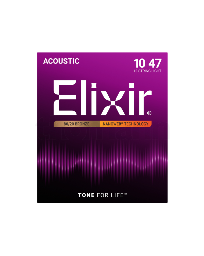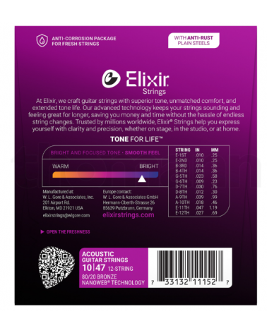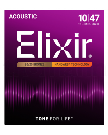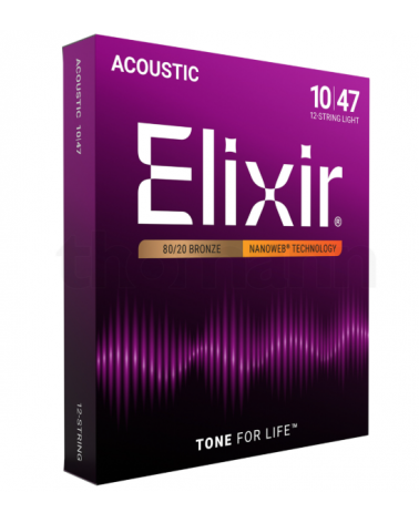 Elixir Nanoweb 11152 Juego de cuerdas para guitarra acústica de 12 cuerdas 80/20 Bronce con recubrimiento NanoWeb.