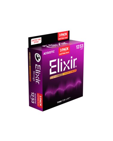 ¡Compra 2 juegos y llévate 1 más de regalo! Este pack incluye tres juegos de cuerdas Elixir Acoustic 80/20 Bronze con calibre .012 – .053, fabricadas en bronce 80/20 y recubiertas con la tecnología Nanoweb. Estas cuerdas están diseñadas para guitarristas que buscan un sonido brillante y definido, con una mayor durabilidad frente al desgaste habitual.