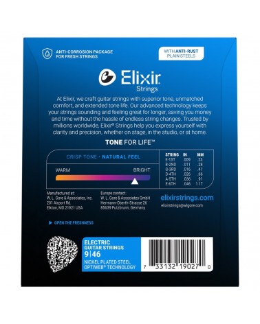 Cuerdas para guitarra eléctrica Elixir Strings con recubrimiento OPTIWEB, calibre ligero personalizado (.009-.046)