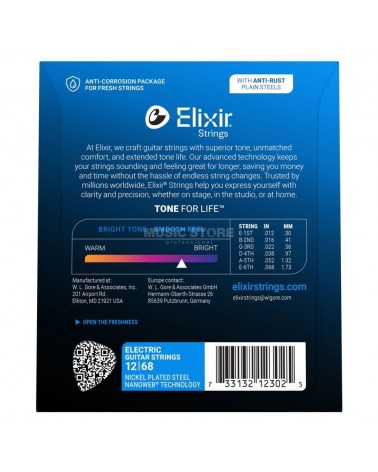 Cuerdas para guitarra eléctrica Nickel Plated Steel 12-68 Baritone con revestimiento NanoWeb. Calibres: .012 .016 .022 .038 .052 .068 - Núcleo de acero con entorchado de acero niquelado -