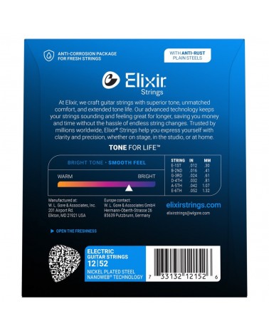 Elixir Juego Cuerdas Guitarra Eléctrica Nanoweb 12152 (012-052)