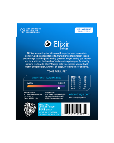 ¡Compra 2 juegos y llévate 1 más de regalo! El set triple Elixir 16571 Optiweb en calibre 009–042 es ideal para guitarristas que buscan cuerdas ligeras con un sonido brillante, una gran facilidad de ejecución y una vida útil prolongada. Gracias a su revestimiento Optiweb, estas cuerdas de acero niquelado ofrecen una respuesta clara y directa, conservando la sensación natural al tocar.