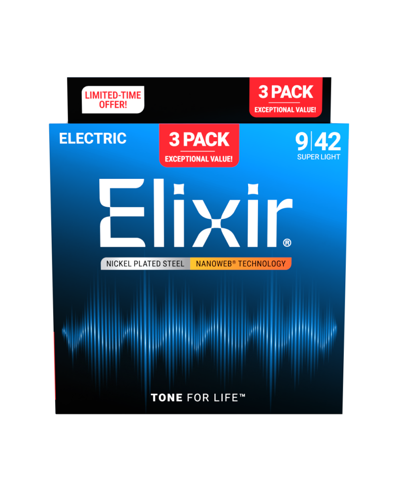 ¡Compra 2 juegos y llévate 1 más de regalo! El set triple Elixir Nanoweb Nanoweb 16566 009-042 para guitarra eléctrica están diseñadas para ofrecer un tono brillante y duradero, con un tacto suave que mejora la experiencia de ejecución. Fabricadas con acero chapado en níquel y un recubrimiento protector Nanoweb, estas cuerdas destacan por su respuesta dinámica y su capacidad para mantener el tono fresco durante más tiempo.