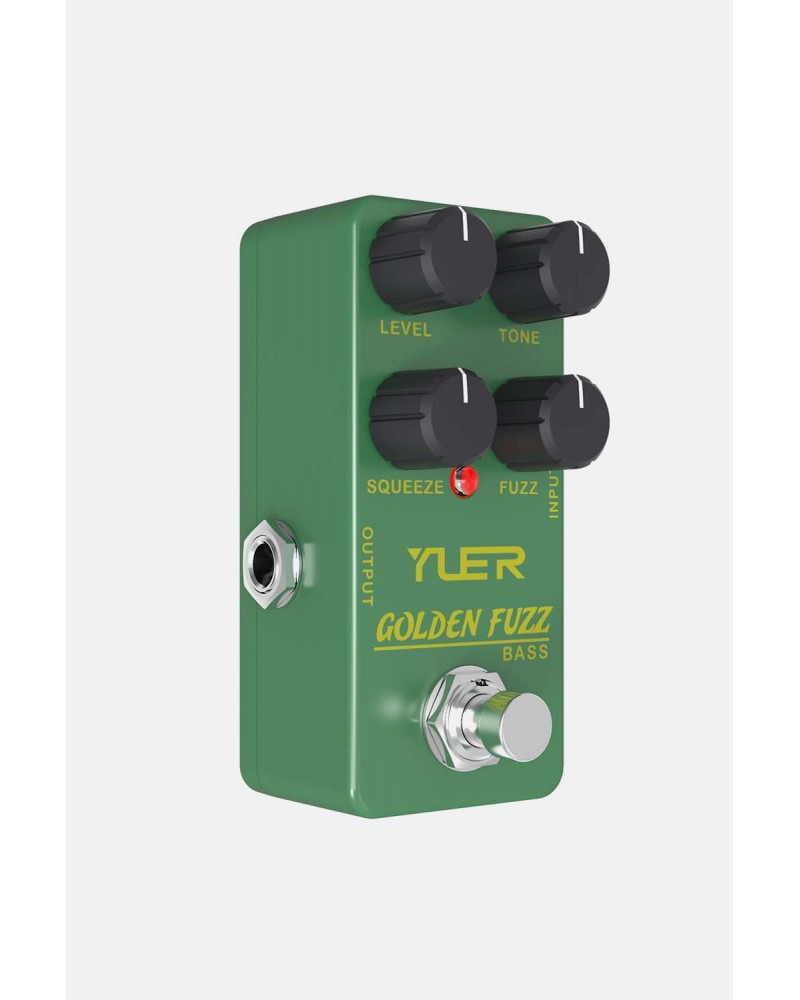 El pedal Golden Fuzz te proporciona el clásico tono Bass FUZZ y se puede utilizar tanto para bajo como para guitarra.Con el SQUEEZE se puede ajustar el ancho de onda.El pedal cumple una doble función para el bajo,lo que permite pasar de deep a scuzzy fuzz con un pequeño movimiento del potenciómetro.