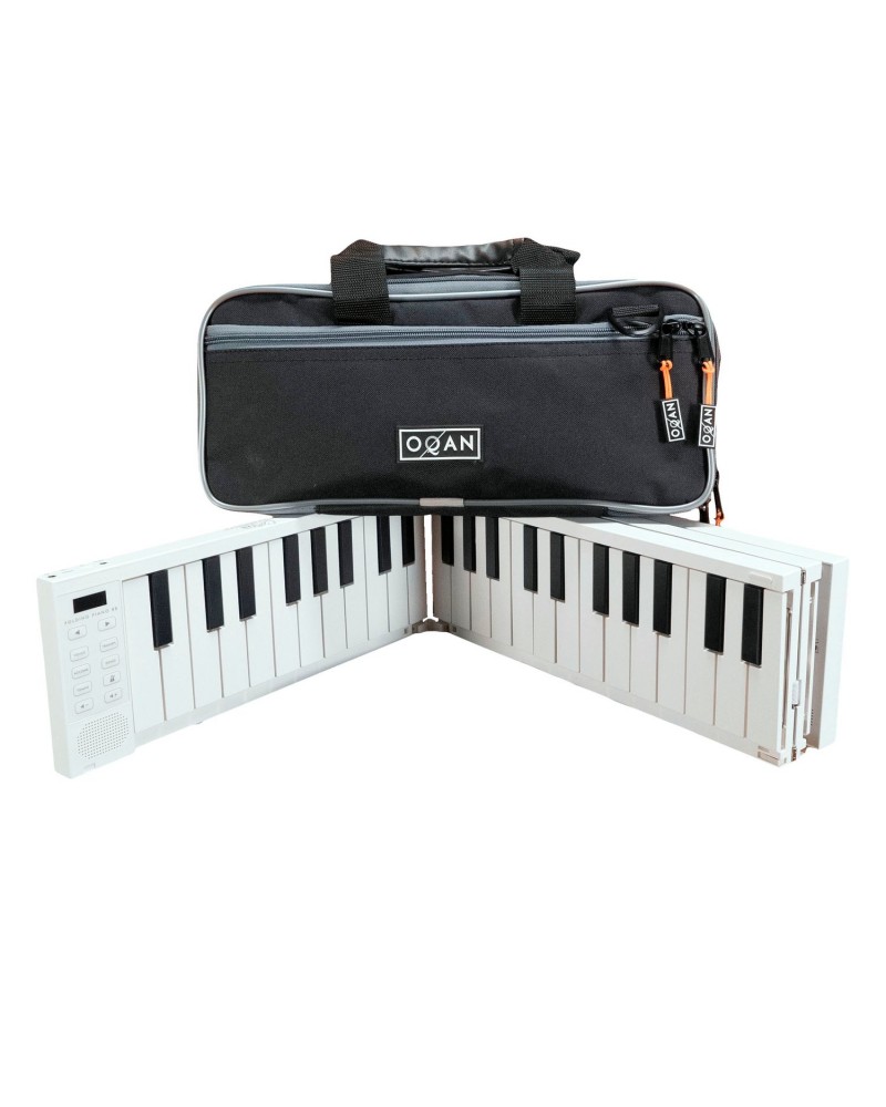 Kit compuesto por piano plegable CARRY ON FP88 + funda Oqan acolchada con bolsillo para accesorios y correas de transporte. El CARRY ON 88 es un dispositivo plegable, compacto y portátil que se despliega en un completo piano de 88 teclas y ofrece al músico la libertad de tocar en cualquier lugar. Es fácil de usar y una herramienta ideal para principiantes, profesores y músicos viajeros. Cuenta con altavoces integrados, salida de auriculares, puerto de carga USB para batería interna recargable, entrada de pedal de sustain (incluido) y muchas otras funciones y herramientas.