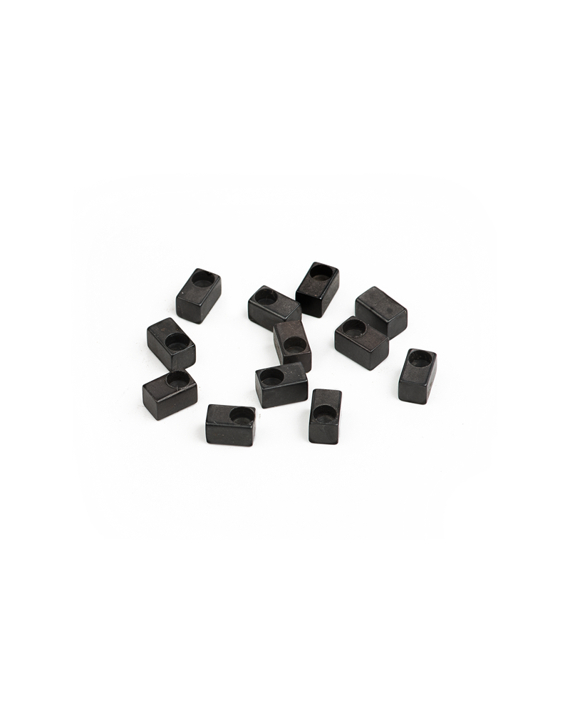 Paquete de doce bloques de cuerda de metal negro que se utilizan para sujetar la cuerda en un sistema de trémolo Floyd Rose®.