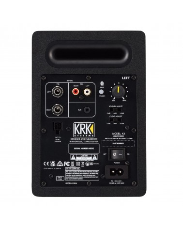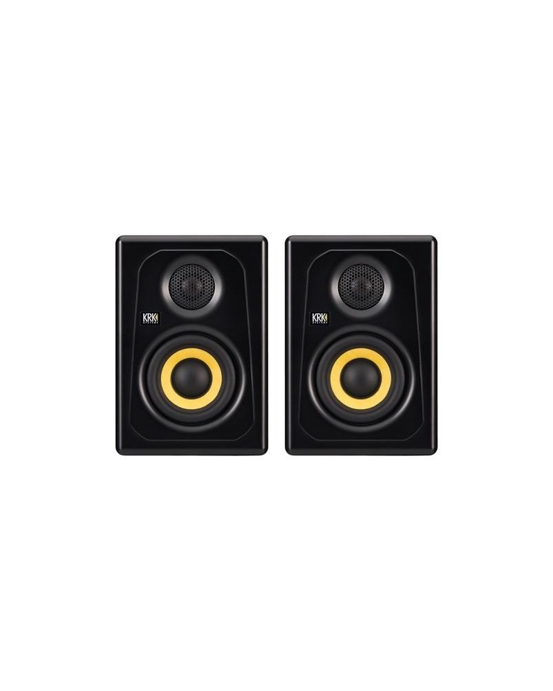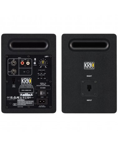 Pareja de monitores activos de referencia de estudio de 2 vías de 3". Los monitores KRK KREATE SERIES ofrecen un valor increíble y el legendario rendimiento de monitorización de estudio KRK a músicos, ingenieros, productores y creadores de contenido. Ofrecen las herramientas necesarias para reproducir cada matiz de su sonido con una claridad y precisión asombrosas. Tipo de sistema: Par de monitores de estudio activos (izquierdo activo – derecho pasivo). Graves: Woofer de 3,5" cono compuesto de fibra de vidrio tejida, imán de ferrita. Controlador de alta frecuencia: Tweeter de 3/4”, cúpula textil e imán de neodimio. Respuesta en frecuencia (+/- 3 dB): 70 Hz - 33 kHz. Rango de frecuencia de bajas frecuencias (-10 dB): 63 Hz. Frecuencia de cruce: 3,06 kHz. Configuración del amplificador: Clase D. Potencia total: 65W. Potencia dinámica de salida total: 130W. Presión sonora máxima (par): 104 dB. Ángulos de cobertura: 147° horizontal x 70° vertical. Entradas de audio analógicas: TRS balanceado de 1/4", RCA, auxiliar de 1/8". Entrada inalámbrica: Bluetooth® Classic 5.3 A2DP. Relación señal-ruido (SNR) >95,7 dB. Voltaje de entrada CA: 100 – 240 V CA (+/- 10 %), 50/60 Hz. Tipo de fusible: T4AL/250 V - No reparable por el usuario. Construcción de la caja: MDF recubierto de vinilo PVC. Construcción del deflector: MDF con placa frontal reforzada de poliestireno de alto impacto. Dimensiones: 205 mm x 140 mm x 159 mm. Peso: 4,5 kg.