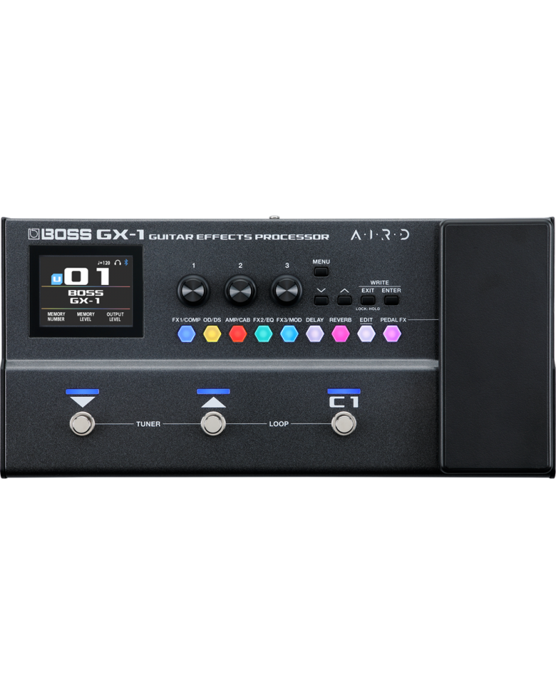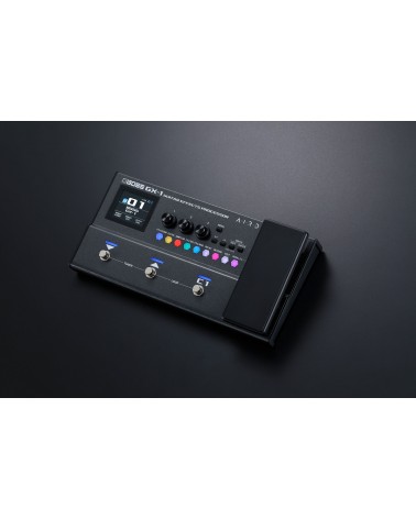 El GX-1 emplea algoritmos heredados del GX-100 para ofrecer sonidos fantásticos a todos los músicos, sin importar su nivel. Explora 23 amplis AIRD superexpresivos, complementados por más de 140 efectos de la enorme biblioteca de BOSS. Con orden de efectos ajustable, ocho bloques simultáneos, pedal de volumen y supresor de ruido, puedes crear fácilmente configuraciones a medida para tocar diferentes estilos musicales e interpretar canciones específicas en directo.