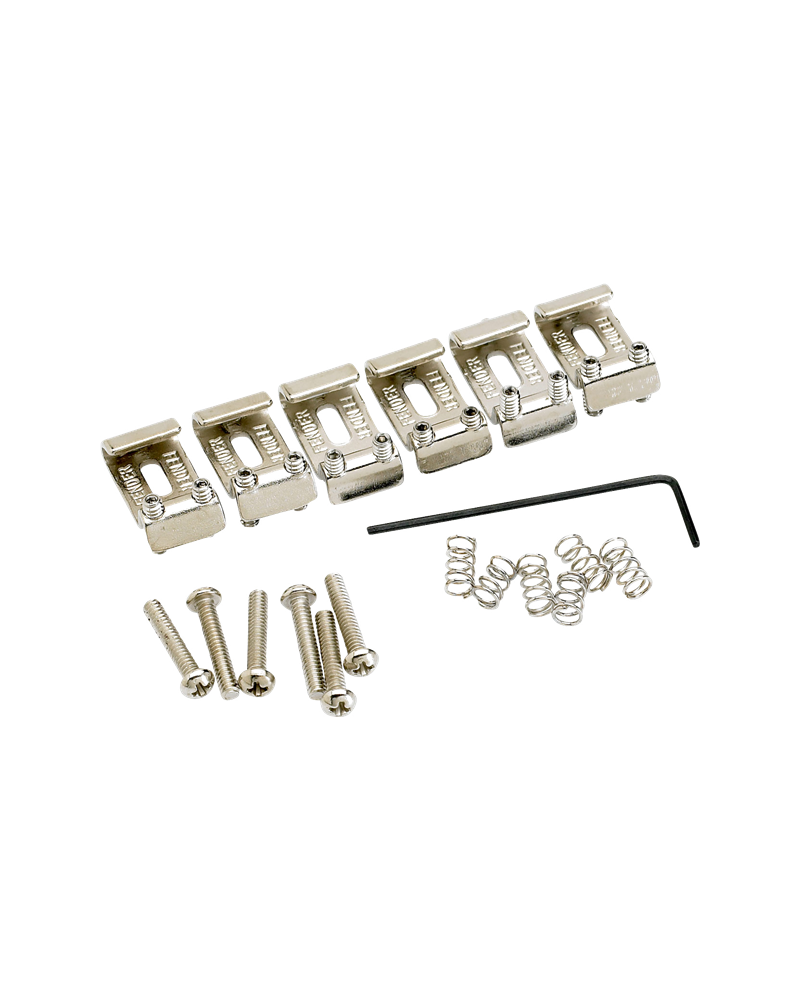 Juego de seis caballetes cromados Para American Vintage Stratocaster (1986-2012) Tornillo de octavación centrado, muelles y tornillos de elevación incluidos.